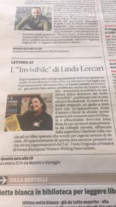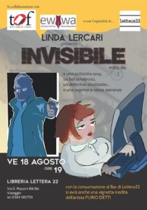Venerdì 18 Agosto, a poco più di un mese dalla pubblicazione ecco la presentazione in libreria di Invisibile. Ci saranno altre occasioni, ma per iniziare non potevo che scegliere la prestigiosa Lettera22 di Viareggio che ha visto nascere il progetto quando ancora non era che un crowdfounding, un bocciolo, un germoglio.